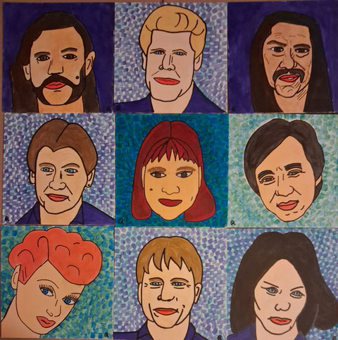 mit den thematisch zusammenpassenden Gemälden kannst du dir dein Pop Art Bild selbst zusammenstellen. wähle die einzelnen Bilder, Portraits oder Zeichnungen und montiere sie gemeinsam. hier ein paar Beispiele
